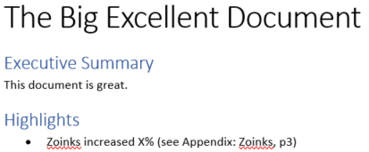 The problem: what if you change the name of the appendix section? Or the page number of the reference changes as the document is edited?